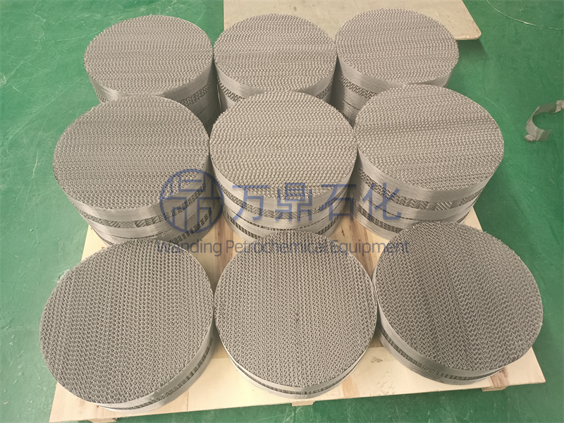 金屬絲網波紋片上開有小孔,加強液體均布及液膜更新,減少填料中的死角(特別是小塔),提高分離效率。為了加強氣液的橫向混合,波紋片上小孔以直徑4?5mm為宜。